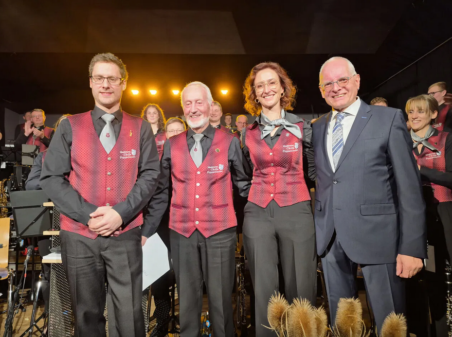 Rolf Aufmhof, bereits seit 10 Jahren Ehrenmitglied des Musikvereins, wurde für 50 Jahre aktive Mitgliedschaft geehrt. Andreas Storch lobte Rolf Aufmhofs langjährigen Einsatz für den Musikverein und verlieh ihm zusätzlich zur Ehrenuhrkunde mit der goldenen Vereinsnadel die höchste Auszeichnung des Musikvereins „Cäcilia“ Poppenhausen.